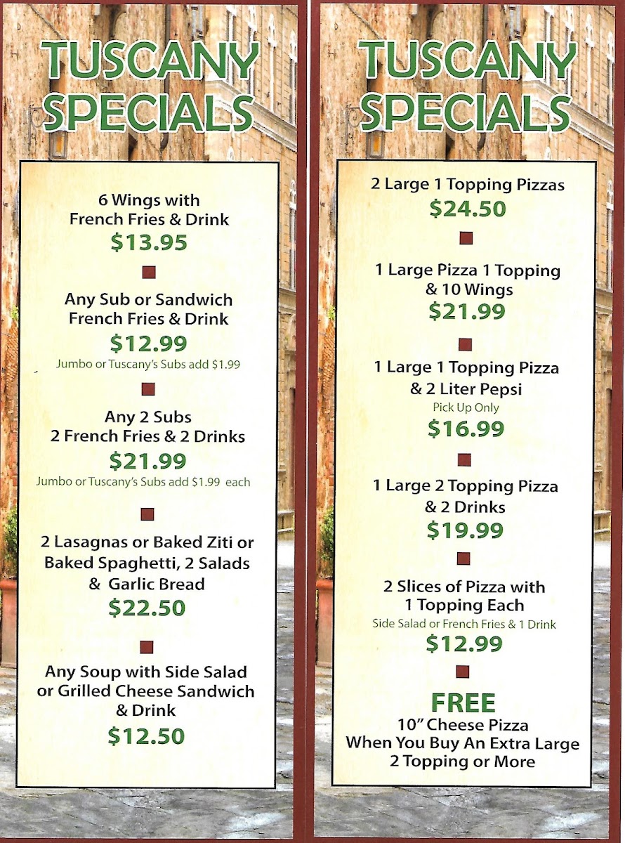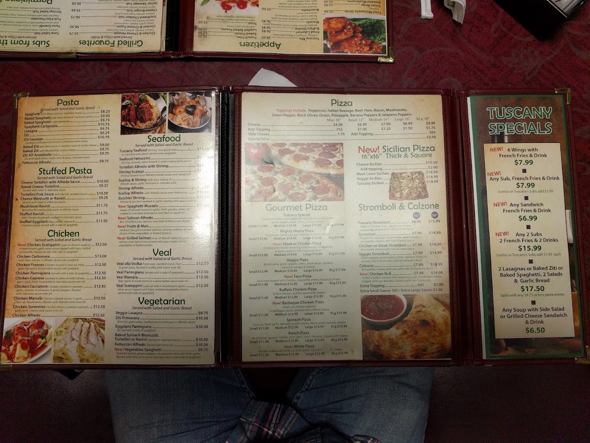 One of the highlights is the flexibility offered with smaller portion sizes, perfect for those with lighter appetites. Guests rave about the Tuscany Special pizza, which is a must-try for any pizza lover. The inviting atmosphere is complemented by excellent service from attentive staff like the well-liked server, Red, ensuring every visit is memorable.